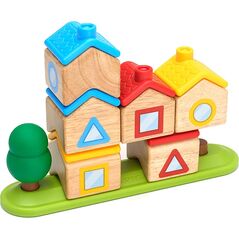Contenu : 6 cubes, 10 rectangles, 4 triangles, 2 rampes, 4 colonnes circulaires.