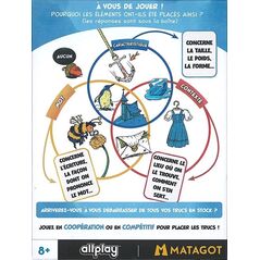 Trucs en Stock : un jeu de vocabulaire et de déduction Les joueurs incarnent des "Chercheurs" et tentent de placer correctement les cartes "Objet" dans un diagramme de Venn. Chaque anneau du diagramme a des règles spéciales. Le twist ? Un seul joueur connaît les règles secrètes.   Comment jouer ? Configurez le diagramme de Venn   Créez un diagramme de Venn avec les étiquettes "Contexte", "Mot" et "Attribut" Celui Qui Sait, découvre les règles   Le rôle de "Celui Qui Sait" est attribué à un joueur. Celui Qui Sait pioche une carte de règle pour chaque anneau (et les garde secrètes !). Le chercheur place un...