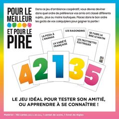 Savez-vous vraiment ce que pensent vos amis ?  Dans   Pour le Meilleur et pour le Pire , vous devrez deviner dans quel ordre de préférence vos amis ont classé différents sujets... plus ou moins loufoques. Placez dans le bon ordre les goûts de vos coéquipiers pour gagner la partie.