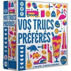 Vos Trucs Préférés mêle avec intelligence jeu de plis et déduction pour un jeu d'ambiance réussi ! Votre autre voisin vous donne aussi son top 5 sur un autre thème, avec lequel vous jouerez, sans connaître son classement ! Faites preuve de déduction pour deviner les valeurs de vos cartes... et de celles des autres joueurs ! Jouez à chaque pli la carte de votre main qui vous semble la plus stratégique. Devinerez-vous les préférences de vos adversaires ? Pas si sûr... Mais en tout cas, vous allez bien rigoler. Vos Trucs Préférés   est un jeu d'ambiance et de plis !