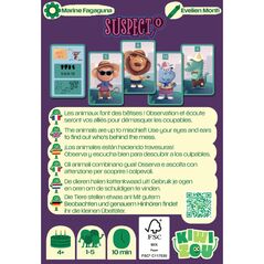 Coopérez, usez d’observation et d’écoute pour retrouver les auteurs de tous ces méfaits. Qui a mangé tous les bonbons ? Qui n’a pas fini sa soupe ? Autant d’énigmes à résoudre et de coupables à confondre.  Dans   Suspecto , on choisit une enquête ainsi que les principaux suspects. Le début de chaque enquête fournit 3 indices visuels qui permettent d’innocenter l'un des suspects.    Quand celui ci est innocenté, il donne à son tour 3 indices pour en innocenter un suivant … jusqu’à ce qu’il n’en reste plus qu’un : le coupable !   Il existe également une variante où un joueur décrit le coupable en répondant uniquement...