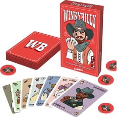 Au saloon, les regards en disent long ... Choisissez des signes secrets Obtenez 4 cartes identiques et envoyez votre signe secret à votre partenaire Si votre coéquipier crie "Winky", votre équipe gagne un jeton Tout s'enchaîne sans pause ni mélange: prévoyez plusieurs signaux dès le départ ... car au saloon on ne s'arrête jamis !