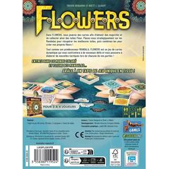 Flowers, un jeu de cartes dynamique dans le monde fleuri et coloré des mandalas Dans   Flowers , vous jouerez des cartes afin d'obtenir des majorités et de collecter ainsi des tuiles Fleur. Placez-vous stratégiquement sur les Mandalas pour récupérer les meilleurs tuiles, puis combinez-les pour créer vos propres fleurs ! Tout comme son prédécesseur   Mandala , Flowers est un jeu de cartes dynamique qui vous confrontera à de nouveaux défis et vous poussera à élaborer de nouvelles tactiques lors de chacune de vos parties !