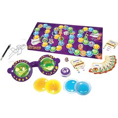 Rien de louche à cela, car dans Mirogolo, vous devrez essayer de faire deviner un mot secret à votre équipe tout en portant des lunettes aux verres déformants !!! 3 niveaux de difficulté vous attendent… Alors n’ayez pas froid aux yeux et sautez sur vos crayons pour relever le défi ! Pour corser le tout, le minuteur infernal égrène les secondes qu’il vous reste… Vite ! Ne laissez pas vos camarades dans le flou ! Un jeu qui mêle dessin et humour pour le plus grand plaisir de tous. Mirogolo a remporté le Grand Prix du Jouet 2012 dans la catégorie Jeu Enfant.
