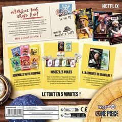 Affrontez les dangers de Grand Line… en 5 minutes top chrono ! Dans ce jeu coopératif au rythme effréné, chaque joueur incarne un membre de l’équipage du Vogue Merry — Luffy, Zoro, Nami, Sanji et les autres — avec son propre deck de cartes et ses pouvoirs uniques. Ensemble, vous devrez vaincre les ennemis, surmonter les événements et relever les défis qui se dressent sur votre route, île après île.   Pas de tour de jeu : tout le monde joue en même temps ! L’objectif : réussir un nombre précis de cartes Défi en alignant les bons symboles, dans le bon ordre, sur le plateau-bateau. Chacun peut poser ses cartes quand il veut, mais...