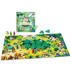 Explorez la forêt enchantée et découvrez les trésors féériques qui se cachent derrière chaque arbre. Sagaland - La Petite Forêt   vous emmène en voyage à travers un pays fantastique. Partez ensemble à la recherche d'objets et de personnages cachés dans le royaume. Essayez de les retrouver derrière les arbres de la forêt !    Lancez le dé et déplacez votre pion sur la prochaine case correspondante du plateau: Si vous vous arrêtez ainsi sur une case avec un symbole, retournez l'un des arbres au centre du plateau derrière lequel vous pensez que se trouve le symbole.  Si vous avez raison : bravo ! Encore 2...