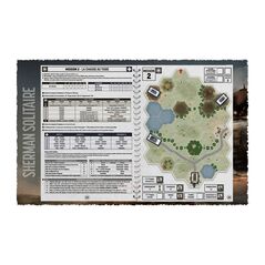 Sherman Solitaire  est un wargame ( jeu de stratégie historique )  en solitaire , se présentant sous la forme d’un livre et se déroulant pendant la Seconde Guerre mondiale, dans lequel vous dirigez l’équipage d’un char Sherman à travers diverses missions. Il propose aussi d’un  mode coopératif  ( 2 chars américains, 1 par joueur ) et d’un  mode Duel  en 1 contre 1.   Sherman Solitaire vous place aux commandes de votre char Sherman et de son équipage quelque part en France pendant la Seconde Guerre mondiale. Il vous propose un livre-jeu de 50 pages comprenant   13 missions variées   pour relever les défis qui vont se...