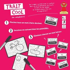 Faites deviner des mots en dessinant uniquement sur des lignes pointillées !  Trait Cool   propose une expérience créative et coopérative unique : chaque joueur tente de faire deviner un mot en ne dessinant qu’à travers un réseau de traits déjà tracés. Chaque joueur pioche secrètement un mot et doit le dessiner sur son ardoise… mais uniquement en suivant les lignes pointillées déjà présentes.  Ces contraintes transforment chaque croquis en casse-tête graphique ! Une fois les dessins terminés, toutes les cartes-mots sont mélangées avec des leurres et révélées. Ensemble, les joueurs éliminent les mots qui ne correspondent à aucun...