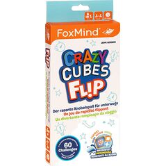 Crazy Cubes Flip est un jeu de réflexion génial et rapide à emporter avec soi ! Le but du jeu est de reproduire le plus rapidement possible le modèle prédéfini de la carte d'exercice avec ses quatre tuiles. Dès qu'une carte est retournée, les deux joueurs jouent simultanément l'un contre l'autre. Celui qui reproduit correctement le modèle le plus rapidement gagne la carte. Avec 60 tâches délicates en trois niveaux de difficulté. Inclut un sac pratique et du matériel de jeu résistant à l'eau.