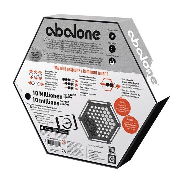 Un jeu pour deux classique et captivant. Qui sera le premier à éjecter les billes adverses hors du plateau de jeu ? Vous devrez respecter deux règles de base : faites attention à ne pas séparer vos billes et essayez d'occuper le milieu du plateau de jeu. Malheureusement, l'adversaire suit la même stratégie... « Abalone », un défi tactique, pas seulement pour les fans de jeux de stratégie.