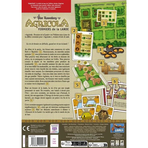 Fermiers de la lande est une extension pour Agricola qui vous entraine dans un contexte différent. Asséchez des parcelles, utilisez de la tourbe pour chauffer vos maisons, élevez des chevaux, évitez les maladies et la famine pour devenir le paysan le plus prospère.