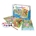 • 3 tableaux sertis 32,5 x 25 cm • 9 flacons d’aquarelles lavables et non toxiques • 1 pinceau aquarelle de très grande qualité • 1 palette pour mélanger les encres • 1 pipette • 1 notice multilingue