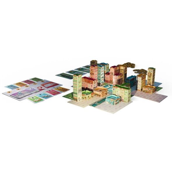 La concurrence est rude : choisissez stratégiquement votre place dans l’ordre de construction et soyez prêt à payer le prix fort pour les meilleurs emplacements. Une fois vos huit bâtiments construits, la partie prend fin. Si vous êtes le plus riche, vous remportez la partie !