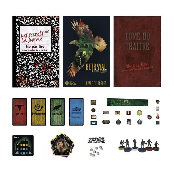 Dans Betrayal at House on the Hill, les joueurs incarnent des explorateurs qui enquêtent sur une vieille maison effrayante composée de différentes pièces. Chaque fois que vous entrez dans une nouvelle pièce, vous vous exposez à de graves dangers. Les explorateurs changent au cours du jeu, selon la façon dont ils gèrent les surprises de la maison. La maison est différente à chaque fois que vous la construisez. Au cours de la partie, un explorateur devient le traître et défie ses anciens compagnons. Les autres explorateurs deviennent des héros qui luttent pour survivre. Dès lors, le jeu devient un combat entre le traître et les héros, jusqu’à ce que mort s’ensuive. Betrayal at House on the Hill comporte cinquante repaires qui racontent chacun une histoire différente. À vous de jouer ! Votre mission est de partir explorer cette mystérieuse maison.