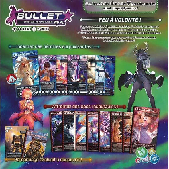 Utilisez vos actions pour former des patrouilles, nettoyer votre plateau des balles et attaquer l'adversaire ! Faites face au flots de balles qui vous tombe dessus à chaque tour et soyez la dernière Héroïne debout pour gagner !