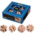 boîte de cadeau, dimensions 210 x 210 x 75 mm. contenu: 4 casse-tête différentes. casse-tête: hêtre. contenu: casse-tête 1: 12 pièces, casse-tête 2: 12 pièces, casse-tête 3: 6 pièces, casse-tête 4: 12 pièces.