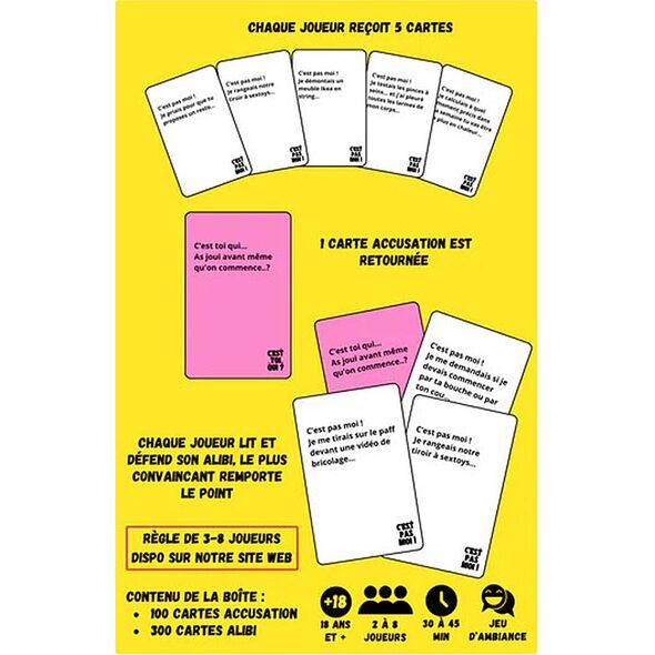 Un jeu d'ambiance osé et hilarant, parfait pour ceux qui aiment repousser les limites du bon goût. Alors, prêt à accuser sans pitié ?