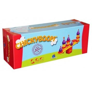 Le jeu contient 6 poules en bois (3 grandes, 3 petites), 7 bottes de foin en bois, 7 roues de charrette en bois, un perchoir en bois (socle et plateforme) et la règle du jeu.