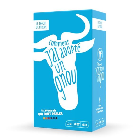 Comment j’ai adopté un gnou est le premier jeu des Editions Le Droit De Perdre dans la collection « Avec le sourire », une gamme qui s’adresse à la fois aux enfants et aux adultes, tout en restant fidèle au programme très second degré du catalogue maison : Taggle (également du duo Hirschfeld & Bleuze), Troquons, Questions de merde, Enigmes absurdes…