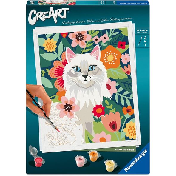Creart Peinture à Numéro - Chat Blanc dans les Fleurs