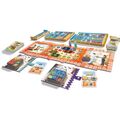 - Phase de ramassage : Déplacez votre Dabba Walla à tour de rôle à travers Mumbai pour collecter des cartes dabba. À chaque fois que vous récupérez une carte, jouez l'une des trois cartes de votre main pour prendre la tuile dabba représentée (un polyomino de 1 à 4 cases) et la placer dans votre chariot, en empilant les tuiles de plus en plus haut au fil des tours. Les dabbas sont de quatre couleurs et vous devez les placer sur des surfaces planes, en remplissant les trous avec des dabbas vides si nécessaire. Si vous connectez deux symboles demi-chai sur des tuiles de même niveau, vous piochez une tuile chai aléatoire avec une action bonus. Conservez toutes les cartes dabba jouées dans une défausse personnelle.
