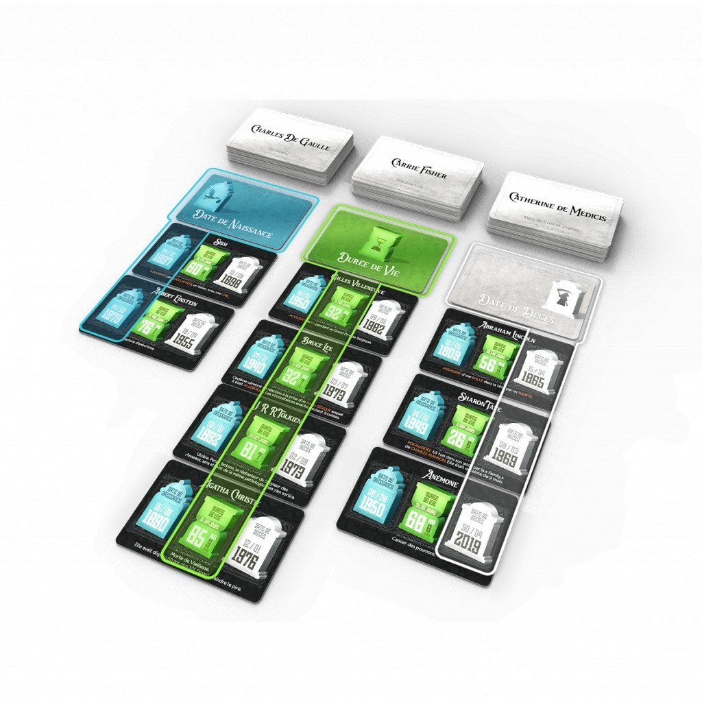 A chaque tour, un joueur va récupérer une carte "célébrité" de son choix parmi trois piles, et la placer correctement dans la colonne de son choix. Ainsi, il pourra décider de deviner soit sa date de naissance, soit sa date de décès, ou encore sa durée de vie.