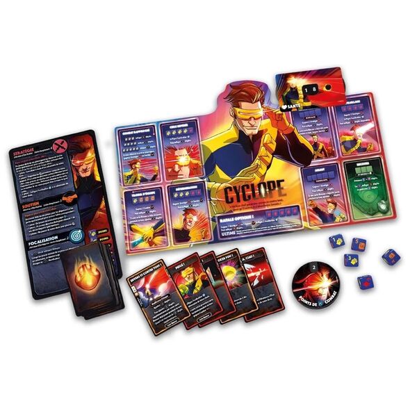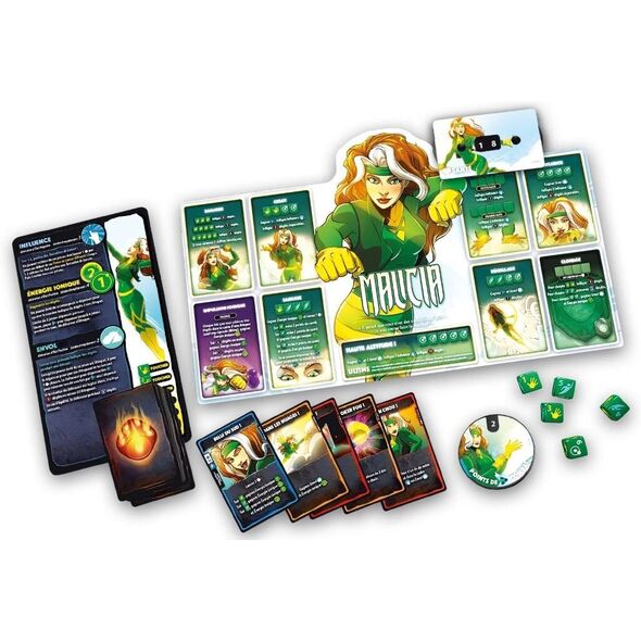 Dice Throne Marvel est un jeu de combat rapide qui permet aux joueurs d'incarner leurs héros Marvel préférés dans des combats en duels, des batailles en équipe et des combats en mode chacun pour soi! Basée sur le jeu à succès Dice Throne, cette boîte Dice Throne Marvel: Cyclope, Gambit, Malicia, Jean Grey permet aux joueurs d'incarner Cyclope, Gambit, Malicia, Jean Grey, chacun avec son propre set de dés, son plateau de jeu et son deck de cartes unique.