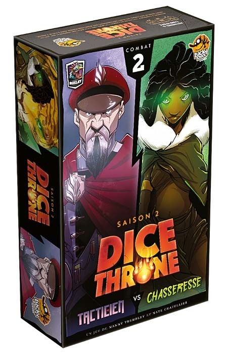 Dice Throne est un jeu compétitif ou en équipe, proposant des combats à base de dés et de pouvoirs spécifiques à chaque personnage. Dans cette première boite vous incarnerez le Barbare ou l'Elfe Lunaire dans un combat épique !