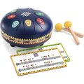 Ce tambour en acier est un instrument à percussion doté de 8 languettes, chacune correspondant à une note de musique. Facile et intuitif à jouer, l’enfant peut créer ou reproduire des mélodies apaisantes en frappant les languettes avec les baguettes fournies.