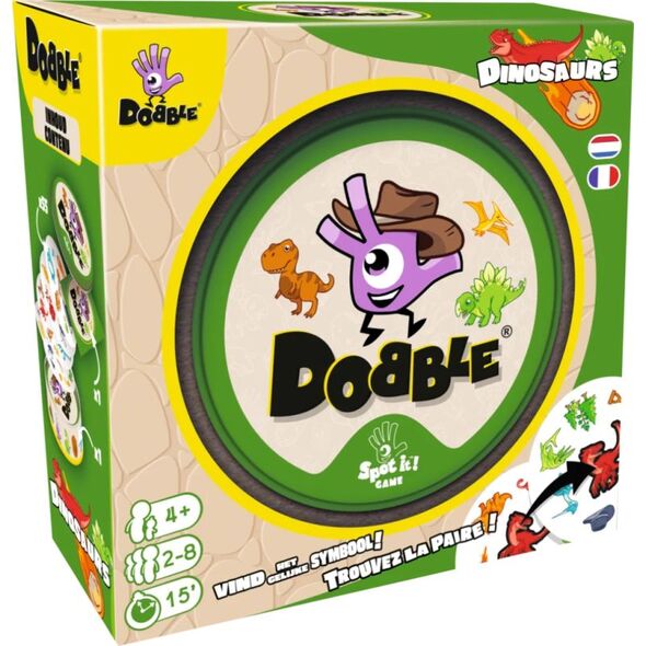 Pars à la découverte du monde des dinosaures avec Dobble Dinosaures! Retrouve plus vite que tes adversaires le symbole identique entre deux cartes dans ce jeu d'observation et de réflexes familial. Une version préhistorique de Dobble pour des parties toujours plus amusantes!