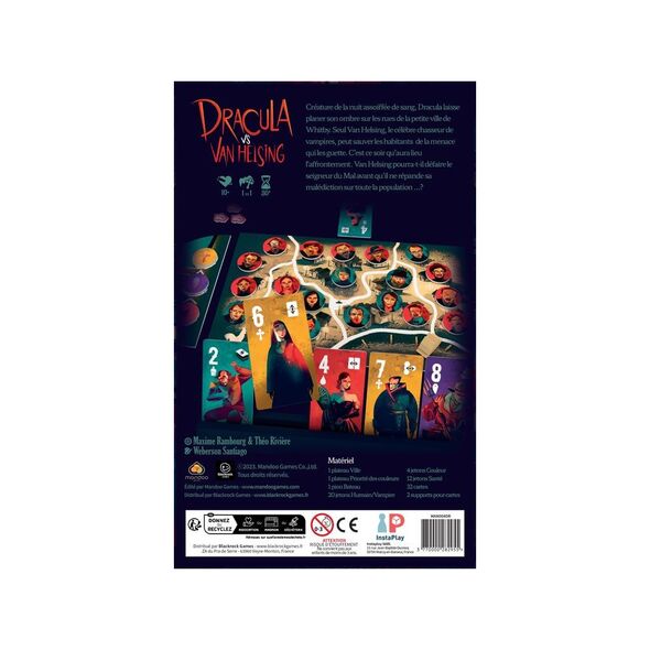 Entrez dans l'univers sombre et mystérieux de Dracula vs Van Helsing, un jeu captivant conçu spécialement pour deux joueurs. Dans ce jeu asymétrique, chaque joueur a le choix entre incarner le légendaire chasseur de vampires, Van Helsing, ou l'infâme vampire Dracula lui-même.