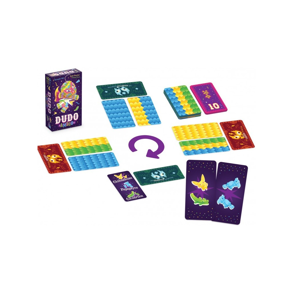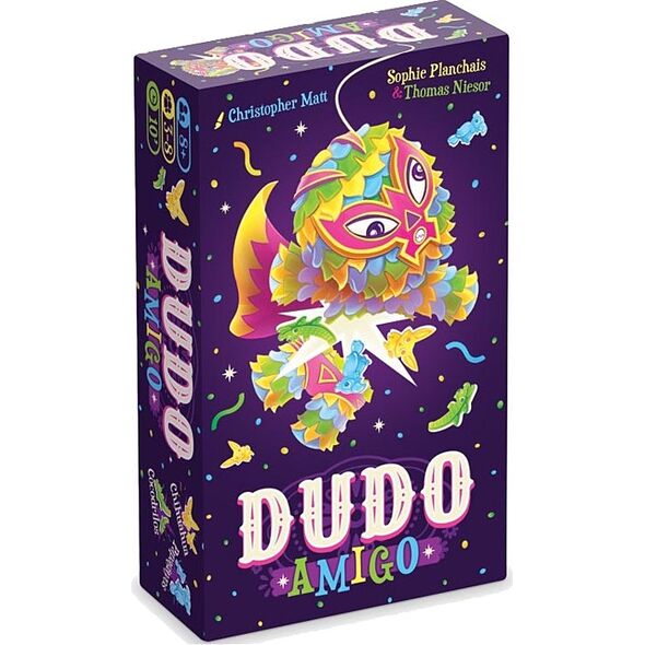 Dudo Amigo est un jeu de cartes compétitif dans lequel votre équipe doit estimer le nombre d’un type de bonbon présent dans la Piñata.