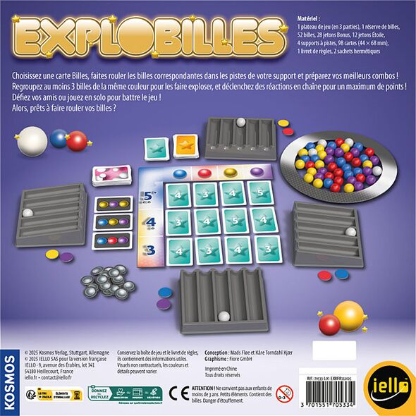 Formez de grands groupes et vous gagnerez des marqueurs bonus qui vous permettront de placer une bille de la même couleur dans votre grille, ce qui vous donnera plus de chances de marquer des points avec un grand groupe. Le joueur qui a le plus de points à la fin de la partie gagne.