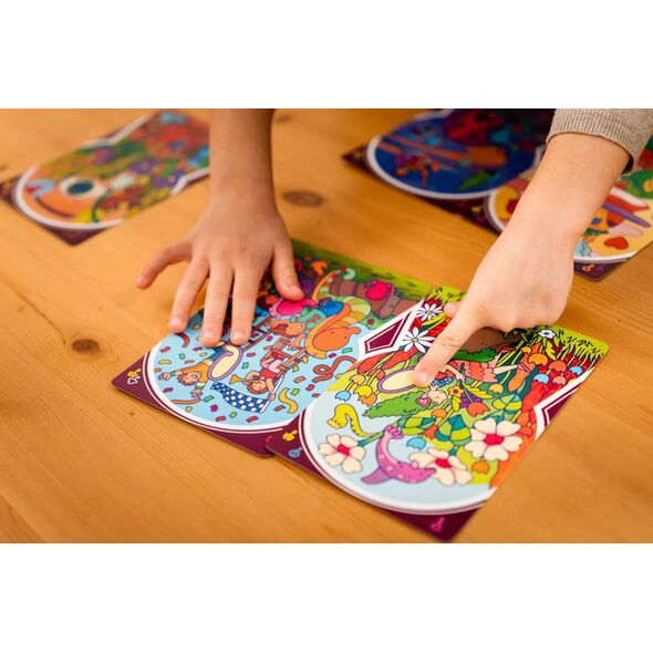 À partir de cinq cartes illustrées avec le même symbole, partez à la chasse aux petits détails bien cachés. Chaque carte regorge d’indices dissimulés dans ses illustrations, repérez les éléments en communs pour aligner les cartes qui vont ensemble. Une fois les cinq cartes correctement associées, le rêve prend forme sous vos yeux. Un jeu idéal pour un moment calme tout seul ou en famille.