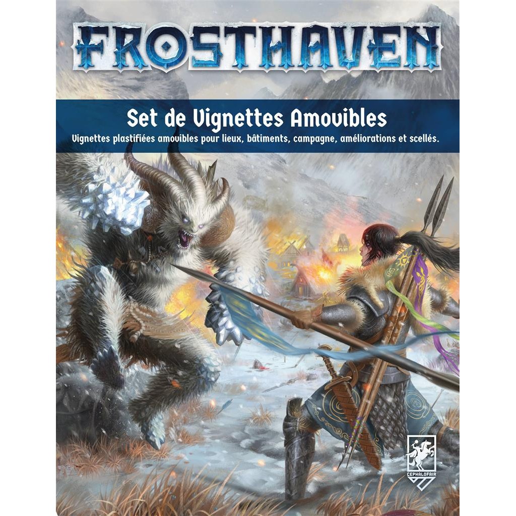 Ce set pour Frosthaven contient des vignettes plastifiées amovibles permettant de multiples repositionnements.