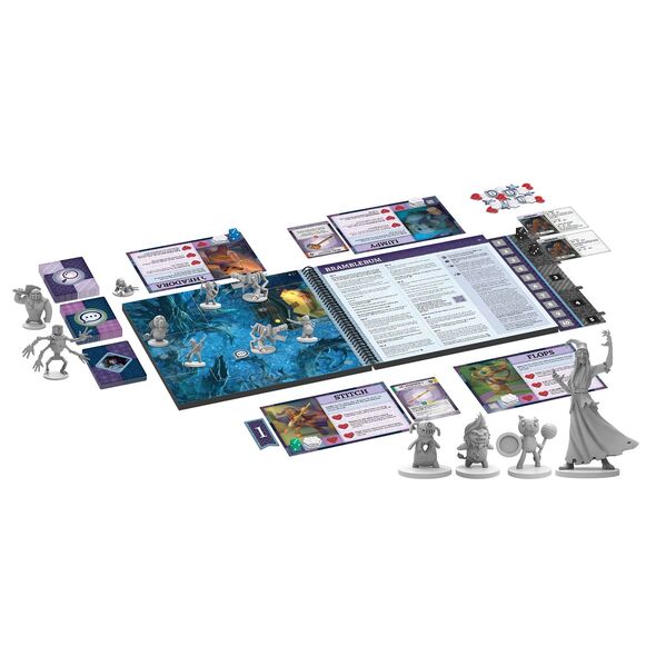 Les joueurs peuvent s'encourager mutuellement en partageant les dés ou leur précieuse garniture. En plus de combattre des sous-fifres, chaque page du livre de contes offre de nombreux points d'intérêt, des personnages charmants avec lesquels interagir ou échanger, ainsi que de nombreux défis inhabituels. Et chaque page n'est qu'un chapitre qui se plie en un récit ramifié et global avec une multitude d'objets et un paquet de cartes découvertes spécial plein de surprises.