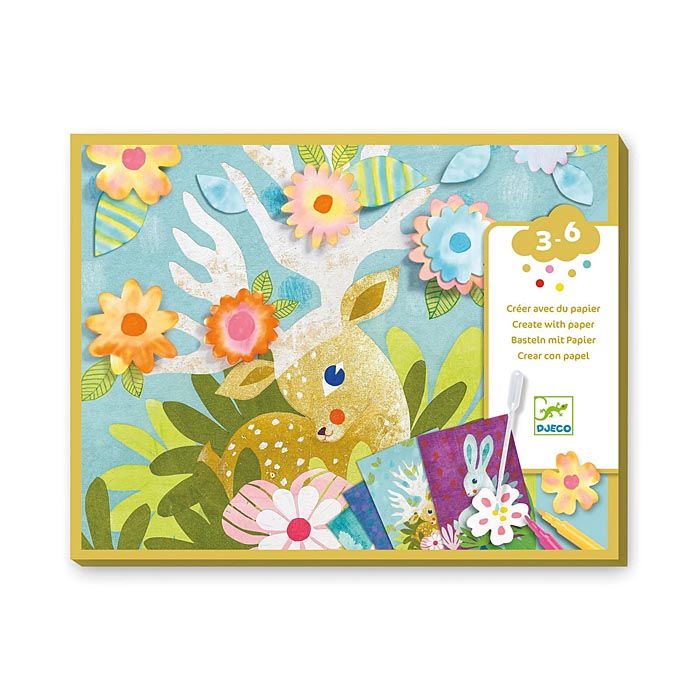 L’enfant détache une forme dans du papier buvard et la place sur le papier absorbant. Il applique quelques points de feutre, il faut ensuite déposer par-dessus une goutte d’eau à l’aide de la pipette : l’encre se diffuse alors... un résultat incroyable! Une fois que le dessin est sec, il le fixe avec du double-face sur les fonds illustrés et lorsque le tableau sera terminé il pourra venir décorer sa chambre.