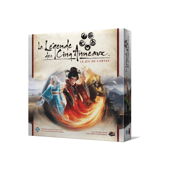 Le jeu de base de La Légende des Cinq Anneaux : le Jeu de Cartes inclut tout ce dont vous aurez besoin pour explorer les sept grands clans de Rokugan : le Can du Crabe, le Clan de la Grue, le Clan du Dragon, le Clan du Lion, le Clan du Phoenix, le Clan du Scorpion et le Clan de la Licorne. Il comprend également de nombreux pions et cartes, ainsi que les feuillets de règles qui vous permettront de jouer vos premières parties de La Légende des Cinq Anneaux : le Jeu de Cartes.