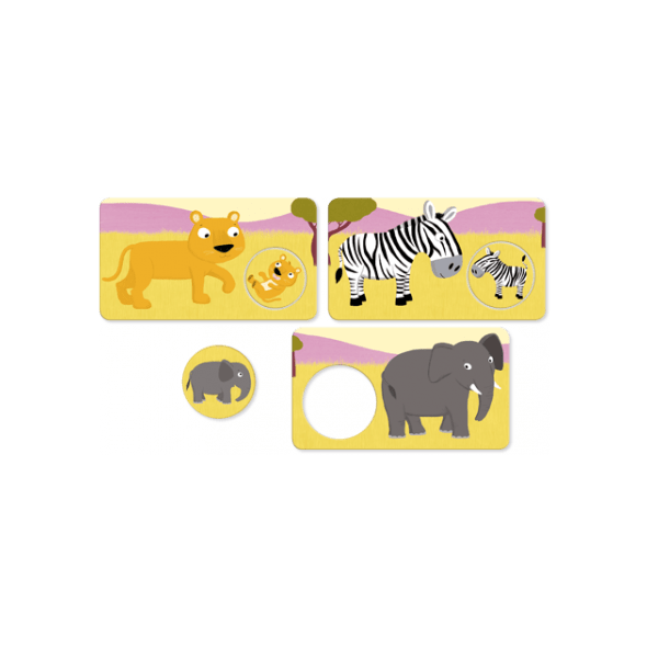 6 jeux progressifs pour découvrir les animaux, leur bébé et le milieu où ils vivent, en jouant seul ou à plusieurs. Des images affectives aux couleurs très gaies. L’enfant joue à associer les mamans et leur bébé. Il reconstitue ensuite le décor pour découvrir les 4 milieux (la ferme, les champs, la savane et la banquise).