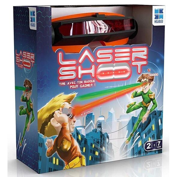 LE COMBAT DES SUPER-HÉROS ! Avec ton super masque laser, participe à un duel fantastique ! Dès que ton adversaire apparaît dans le viseur, déclenche vite ton tir pour le toucher ! C’est réussi ? Il perd une vie ! Attention, dès qu’un joueur a perdu cinq vies, il est hors de combat ! Qui sera le vainqueur de ce duel ?