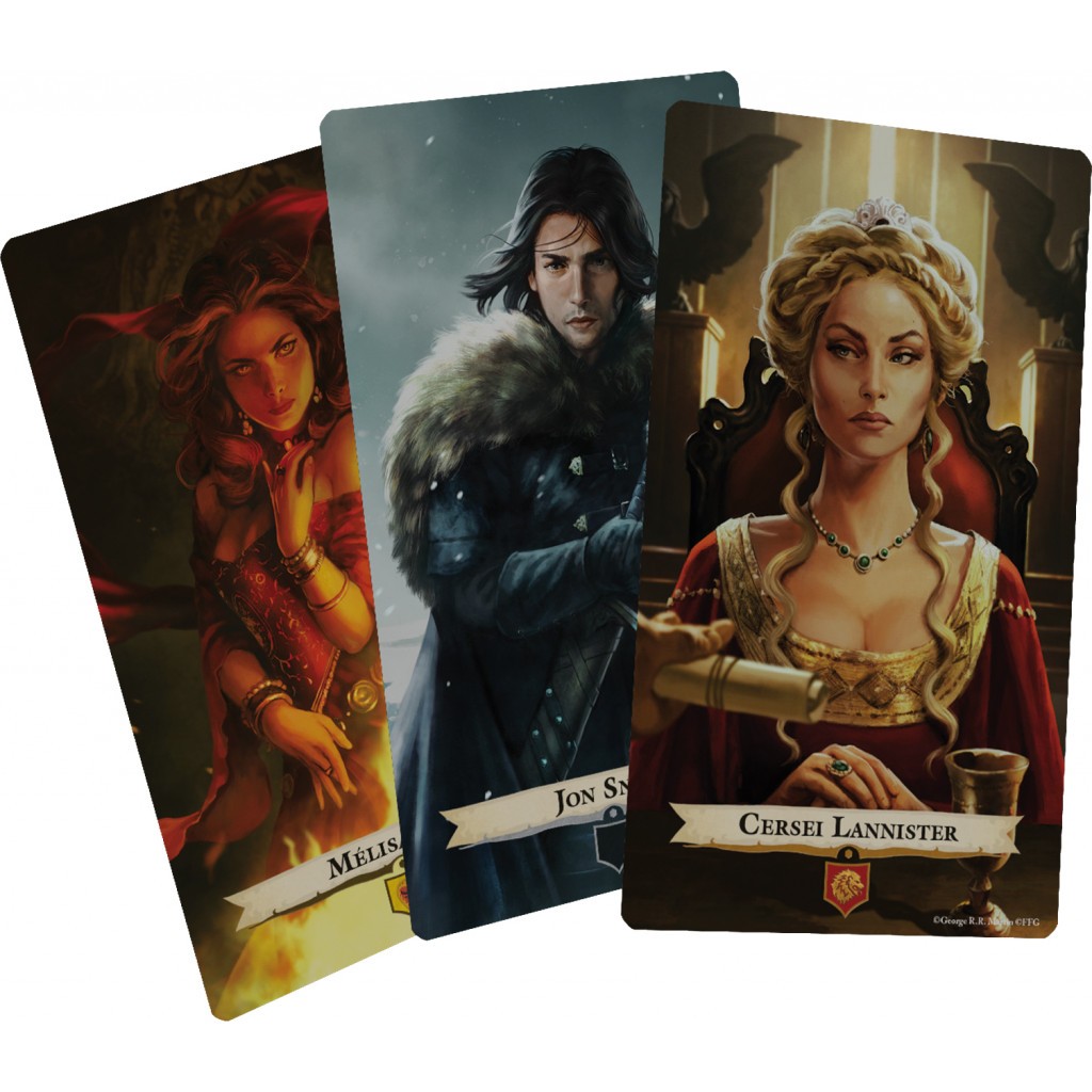 Manipulez la politique de Port Réal dans ce jeu de cartes rapide et passionnant ! De 3 à 6 joueurs s’affrontent pour dominer Westeros, grâce à 9 personnes emblématiques de la saga. Utilisez votre influence pour recruter des alliés et vous attirer leurs faveurs, surveillez de près les allégeances et alliances des autres concurrents et sabordez-les dès que possible !
