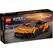 Cette maquette McLaren intègre un aileron arrière réglable en mode route ou course, un moteur arrière, un cockpit, un écran d'infodivertissement et des entrées d'air sur les côtés et le capot. Elle s'accompagne d'une minifigurine de pilote.