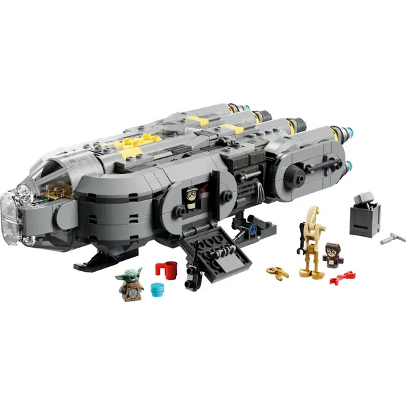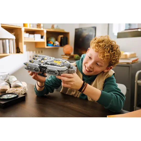 Ouvrez la verrière du cockpit et soulevez le toit du compartiment principal pour placer la figurine LEGO de Grogu et 2 adorables Anzellans à l'intérieur. Utilisez les outils et les pièces de droïde dans l'atelier pour construire un droïde de combat.