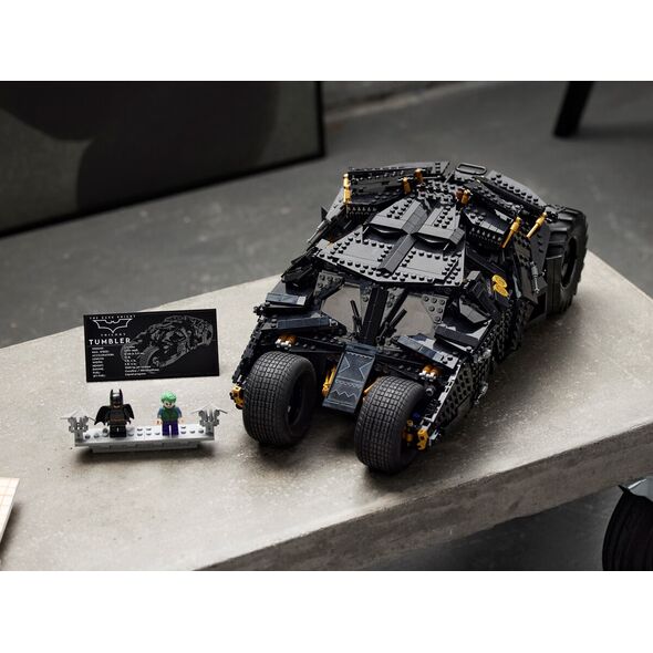 Ccomprend un toit ouvrant qui offre un accès aux sièges conducteur et passager, ainsi qu'au tableau de bord. Le set inclut les figurines de Batman et du Joker. Avec un présentoir solide permettant d'exposer le modèle fini.