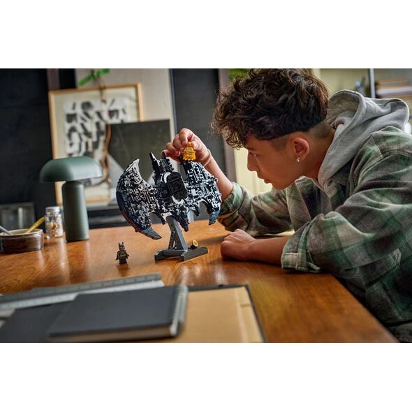 Exposez le signal de Batman sur son support ou au mur, grâce au système intégré. Ce modèle s'orne d'objets culte de l'univers DC, amovibles et repositionnables, dont des Batarangs et le marteau de Harley Quinn.