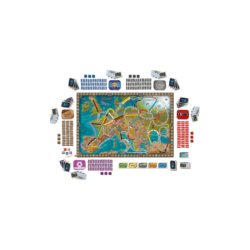 Cette somptueuse édition collector des Aventuriers du Rail™ Europe célèbre des années de passionnantes aventures ferroviaires en famille ou entre amis à travers le monde. Elle inclut des wagons et des gares finement sculptés, contenus dans de magnifiques boîtes en métal toutes uniques et frappées d’un logo personnalisé. Le jeu dispose également d’un plateau surdimensionné et a été enrichi de nouvelles illustrations ainsi que de toutes les cartes Destination publiées à ce jour.