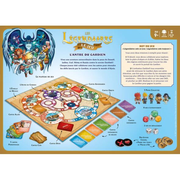 Incarnez l’un des 5 Légendaires pour vaincre les défis lancés par le sorcier Darkhell ! Vivez une extraordinaire aventure grâce à ce jeu de plateau mêlant la magie et le fantastique ! En incarnant Danaël, Jadina, Gryf, Shimy ou Razzia, chaque joueur doit collaborer avec les autres pour résoudre les défis lancés par le Gardien et sauver le monde d’Alysia.