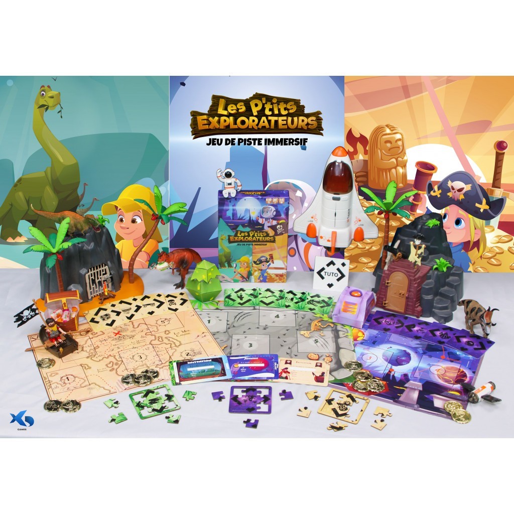 Une fois tous les marqueurs interactifs validés, les explorateurs doivent compléter une carte au trésor en papier, qui révèle le trésor et donne le temps de parcours. Chaque aventure est accompagnée d’une musique thématisée et d’une voix-off guidant les joueurs. Sont fournis dans la boite les cartes invitations d’aventuriers ainsi qu’un trésor à bonbon pour une activité clé en main.