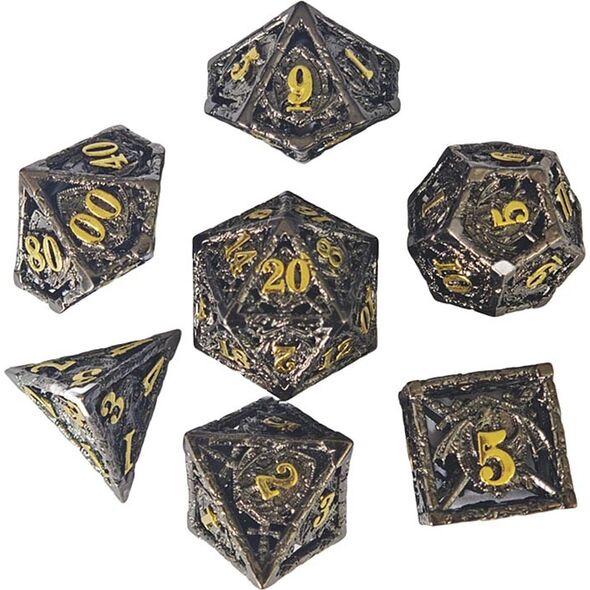 Lot de 7 Dés RPG Métal Creux Dragon Noir
