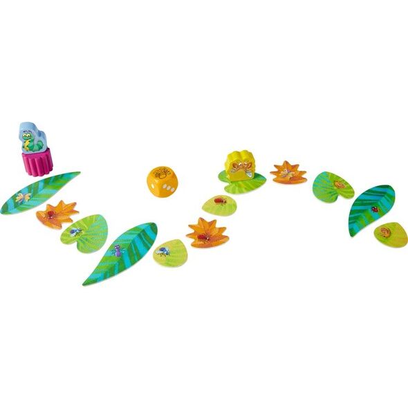 Contenu : 1 ver luisant Victor, 1 chenille Myrtille, 1 dé, 1 fleur, 12 feuilles, 1 règle du jeu.